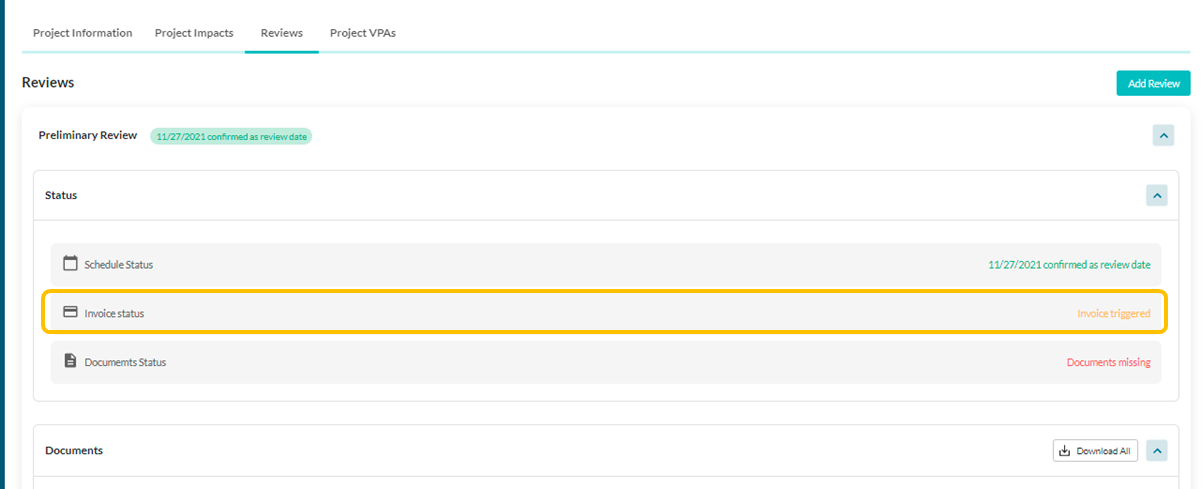 Once the review is approved by the Certification team, the Status of the review is updated as Finished as shown below. Project status also gets updated as shown below. Note: Below is the Project Status for each Review Approval stage. Review ...