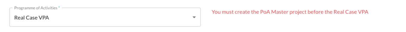 Real Case VPAs should be connected to a PoA Master project. This PoA Master project should exist already.